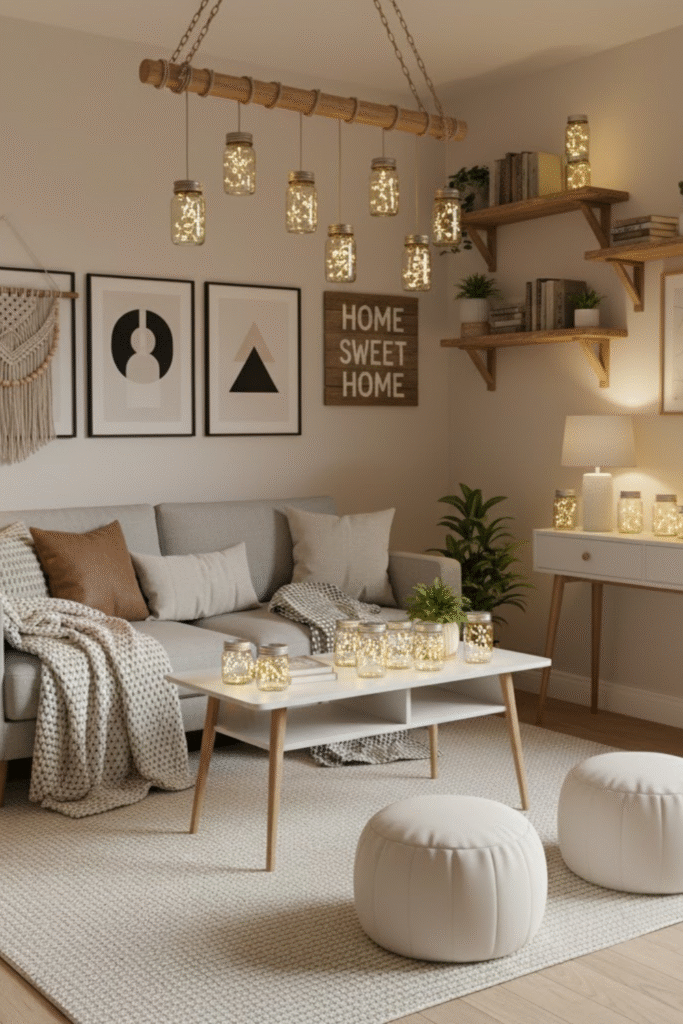 You can repurpose items you already have — for example, repaint old furniture, turn a ladder into a bookshelf, or use jars and bottles as candle holders. These small touches instantly make your home feel unique and cozy.