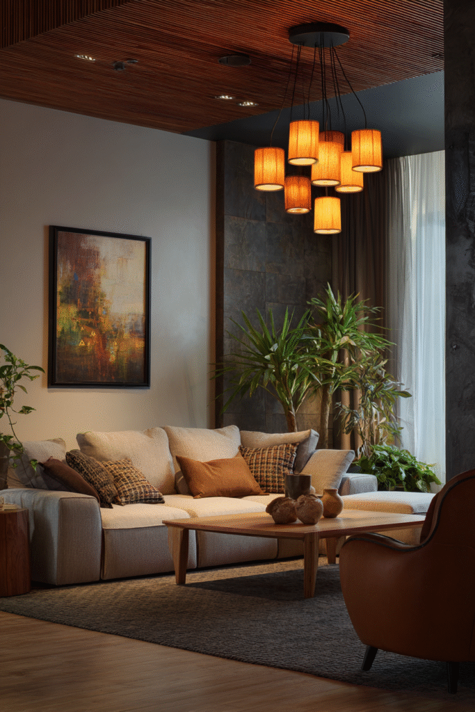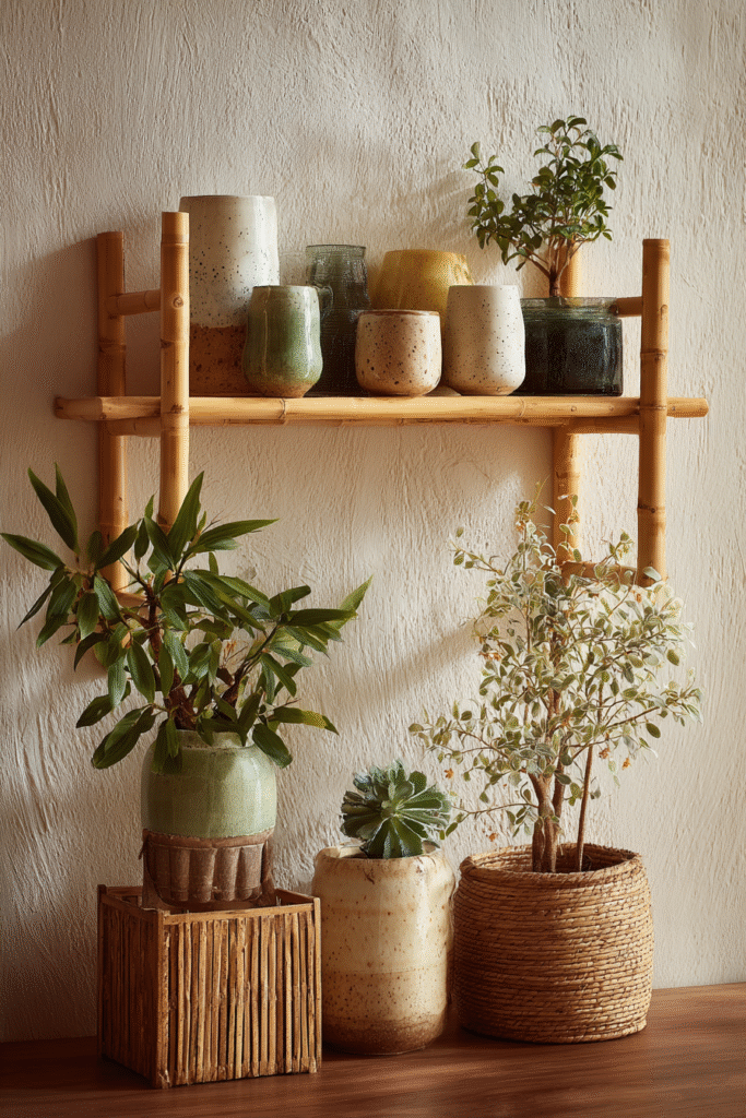 DIY projects are perfect here — repaint old furniture, build floating shelves, or make your own wall decor to save money. Add green plants for freshness and life, and combine rustic elements with clean lines to keep the look modern yet cozy.