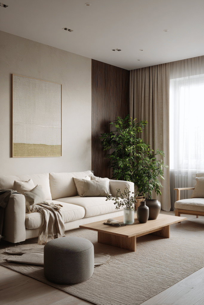 Neutral tones also give flexibility for seasonal updates — swap pillows or throws to refresh the look anytime. Layering textures like rugs, curtains, and throws adds warmth and depth without cluttering the space. Natural wood furniture or subtle metallic accents complement neutral palettes beautifully.