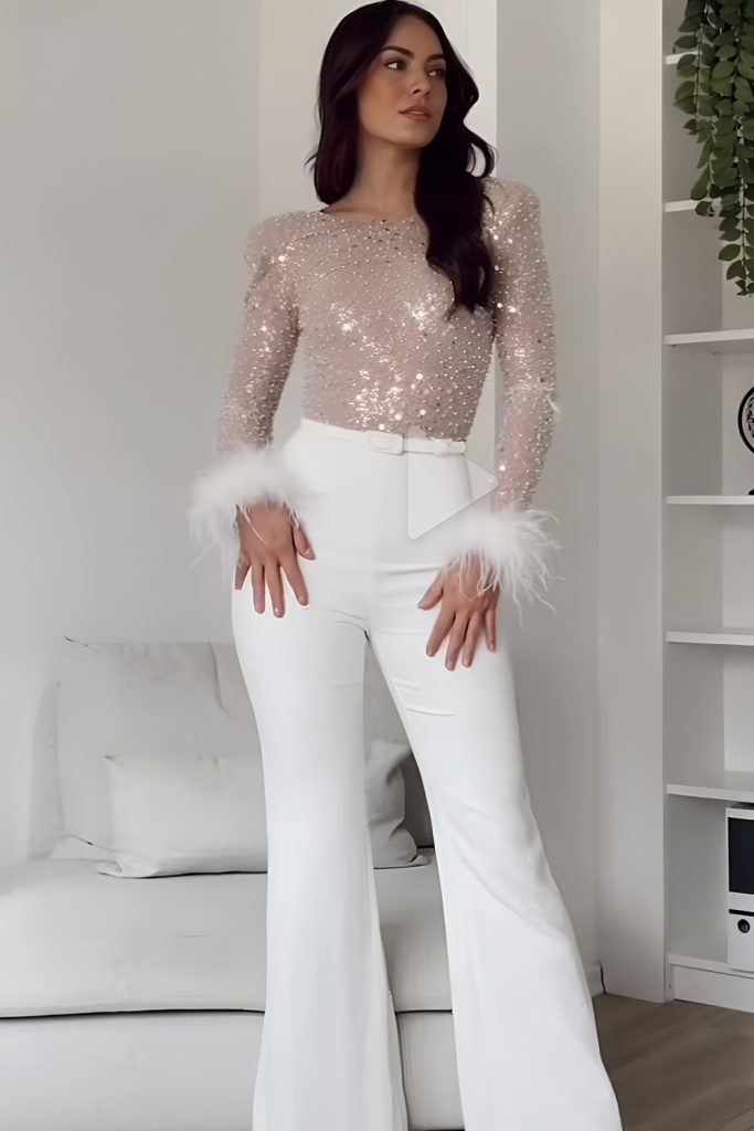 2. Fresh White Suits Combined with Sparkly Tops