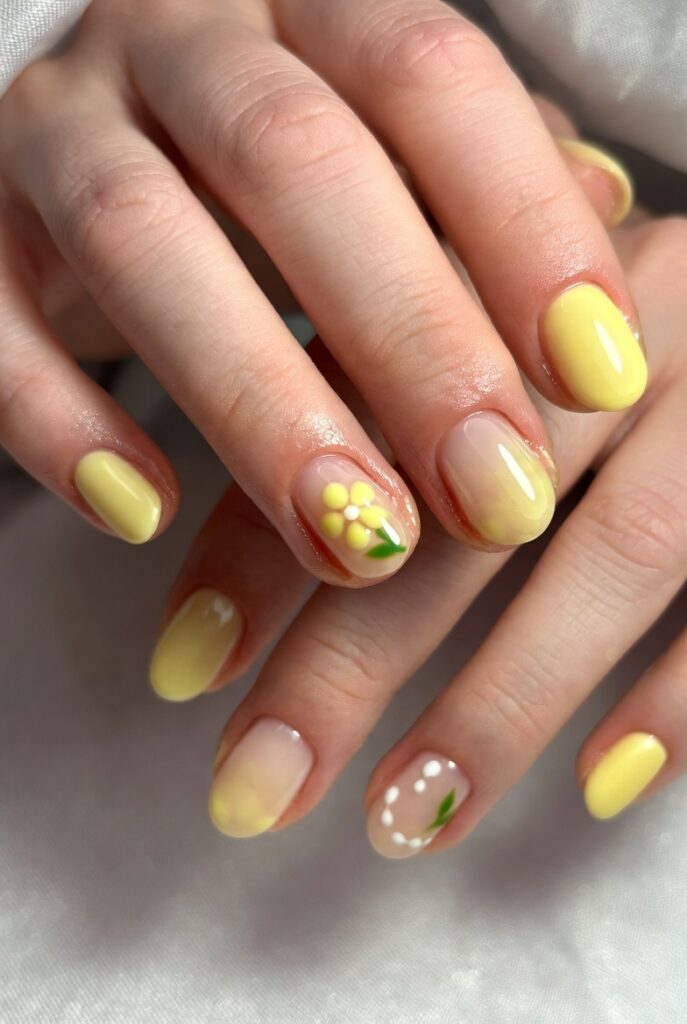 Bright and happy — light yellow nails bring sunshine to your spring style.