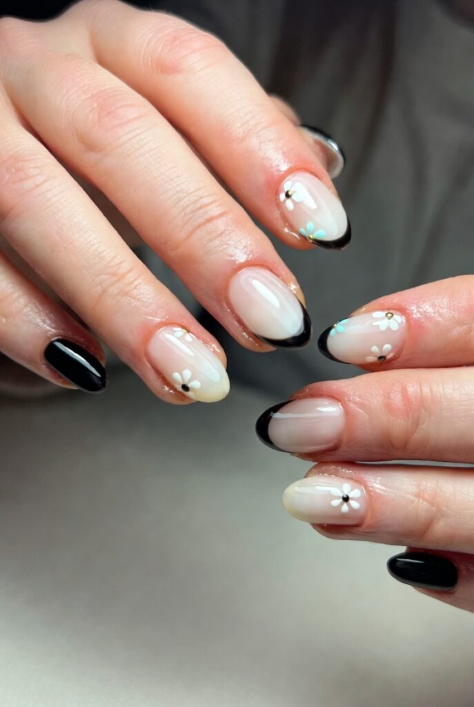 Clear nails with tiny flowers are soft and airy March nail ideas for spring. The transparent base keeps the design light and natural-looking. These spring nail designs are perfect if you prefer minimal nail art with subtle detail. Small floral accents add charm without making the nails look heavy. These March manicure ideas feel clean, modern, and easy to match with any outfit.