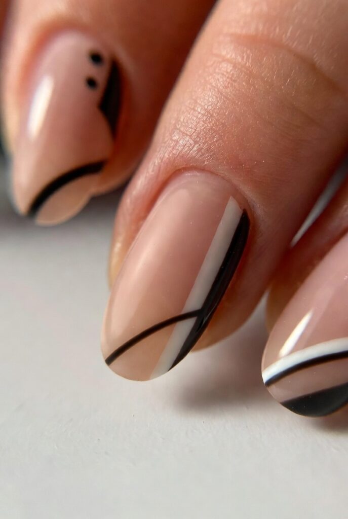 Simple lines on neutral nails give a modern, stylish spring vibe.