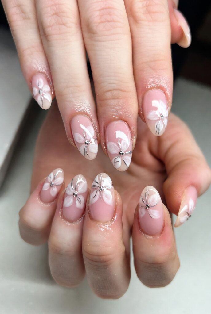 Light, delicate, and fresh — clear floral nails are perfect for spring days.