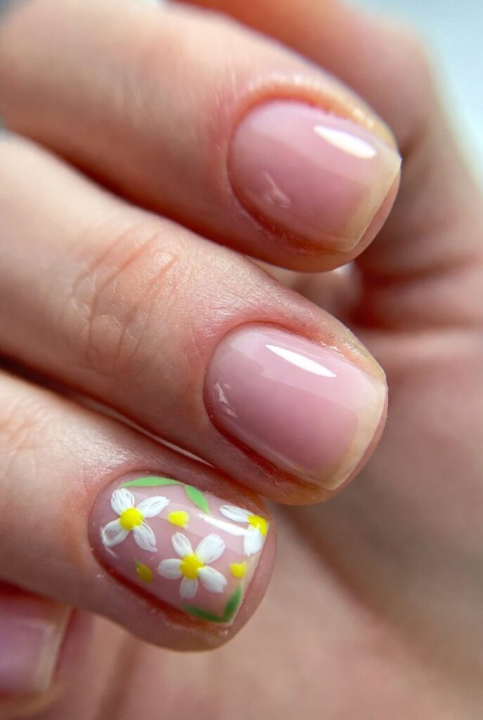Sweet daisies and soft colors make this manicure bright, playful, and perfect for spring.