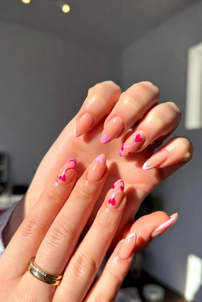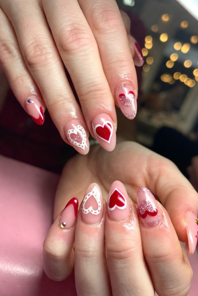 Nothing says Valentine’s like hearts, making this one of the most loved Valentines Nails Ideas. In Valentine’s Day nail designs 2026, tiny hearts, outline hearts, and single accent heart nails are trending everywhere. These heart nail designs for Valentine’s Day feel playful yet romantic, perfect for couples, selfies, and love-season photos. You can keep them minimal with nude bases or go bold with red and pink combos. If you enjoy romantic nail art ideas that instantly show Valentine vibes, heart nails are a must-try this year.