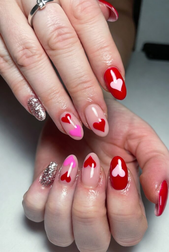 Mixing pink and red shades is a fun and eye-catching trend in Valentines Nails Ideas. For Valentine’s Day nail designs 2026, alternating colors, ombré blends, or heart accents are very popular. This color combination creates playful yet romantic romantic nail art ideas perfect for Valentine’s season. Pink and red nails instantly show love vibes while staying trendy. If you enjoy colorful and expressive trendy Valentine nails, this mix is perfect for dates, photos, and festive Valentine looks.