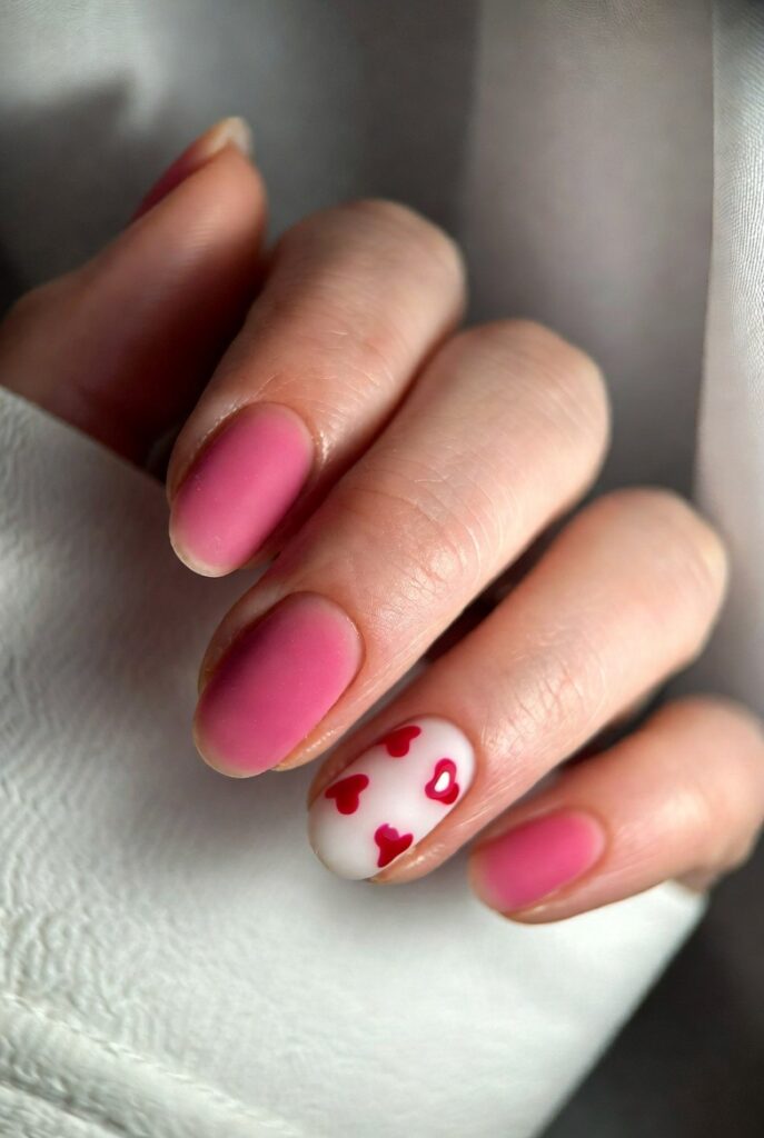 Matte finishes add a soft and modern touch to Valentines Nails Ideas. In Valentine’s Day nail designs 2026, matte red, dusty rose, mauve, and nude shades are trending strongly. This texture gives nails a smooth and elegant look that feels unique and stylish. Matte nails look beautiful with minimal hearts or simple designs. If you want romantic nail art ideas that feel classy but different from glossy styles, matte trendy Valentine nails are a perfect choice for a refined look.