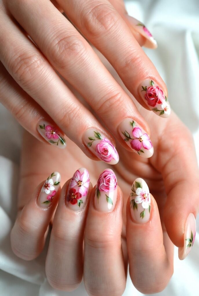 Floral accents add softness and charm to Valentines Nails Ideas. In Valentine’s Day nail designs 2026, tiny roses, daisies, or delicate flowers on nude or blush bases are trending. These romantic nail art ideas feel feminine, fresh, and elegant without being too bold. Floral Valentine nails work beautifully for dates, brunches, or special moments. You can keep flowers on one or two accent nails for balance. If you want trendy Valentine nails with a gentle romantic touch, floral designs are a lovely choice.