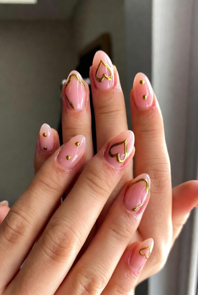 Gold accents bring a classy and luxurious vibe to Valentines Nails Ideas. For Valentine’s Day nail designs 2026, thin gold lines, foil details, or soft gold glitter are very popular. These trendy Valentine nails look stunning with red, nude, or soft pink bases. Gold details instantly elevate simple designs and make nails feel special. If you love romantic nail art ideas with a premium look, gold accent Valentine nails are perfect for parties, dinners, and special occasions.