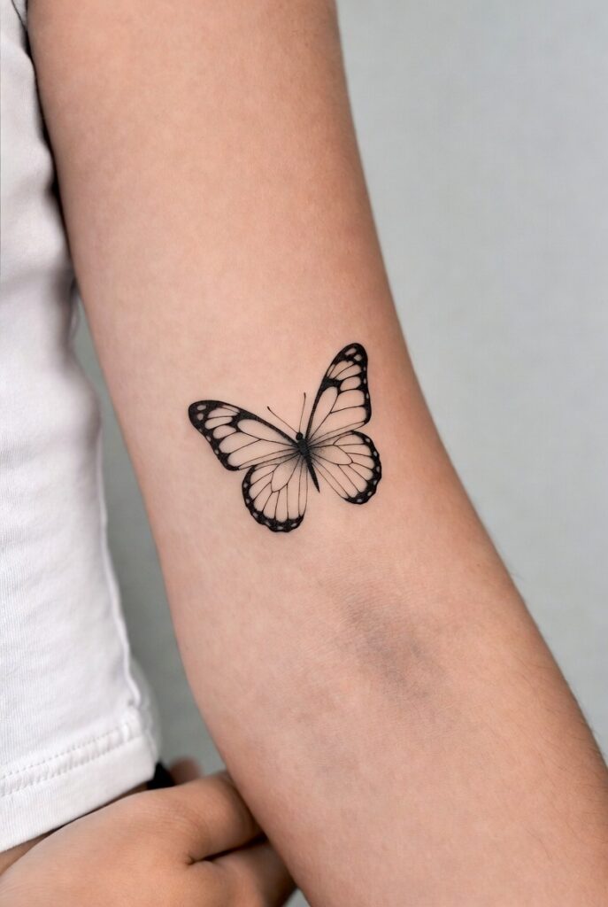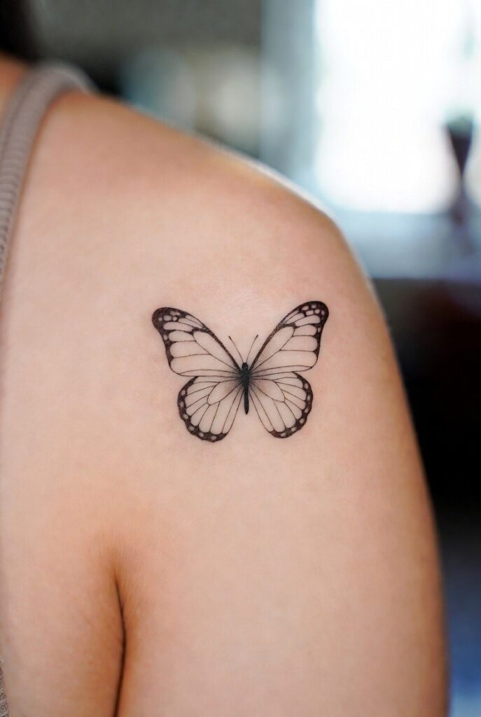 A butterfly tattoo is a soft symbol of new beginnings and strength.