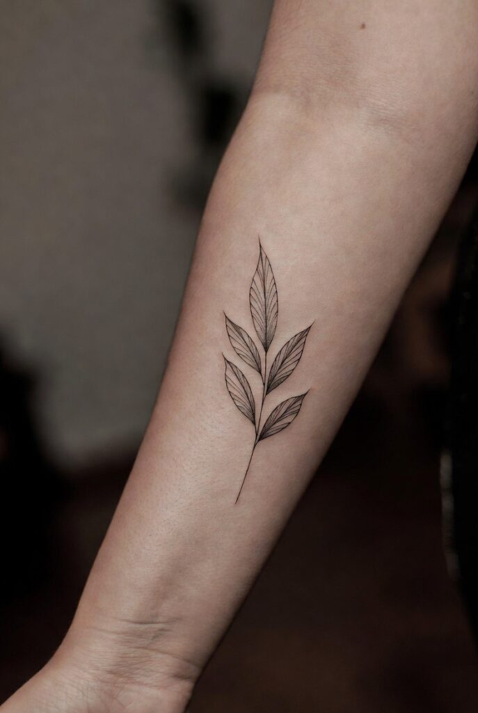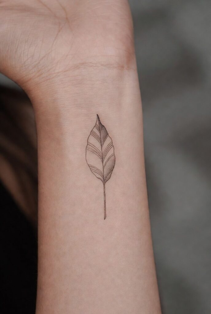 A small leaf tattoo can symbolize steady growth and inner peace.