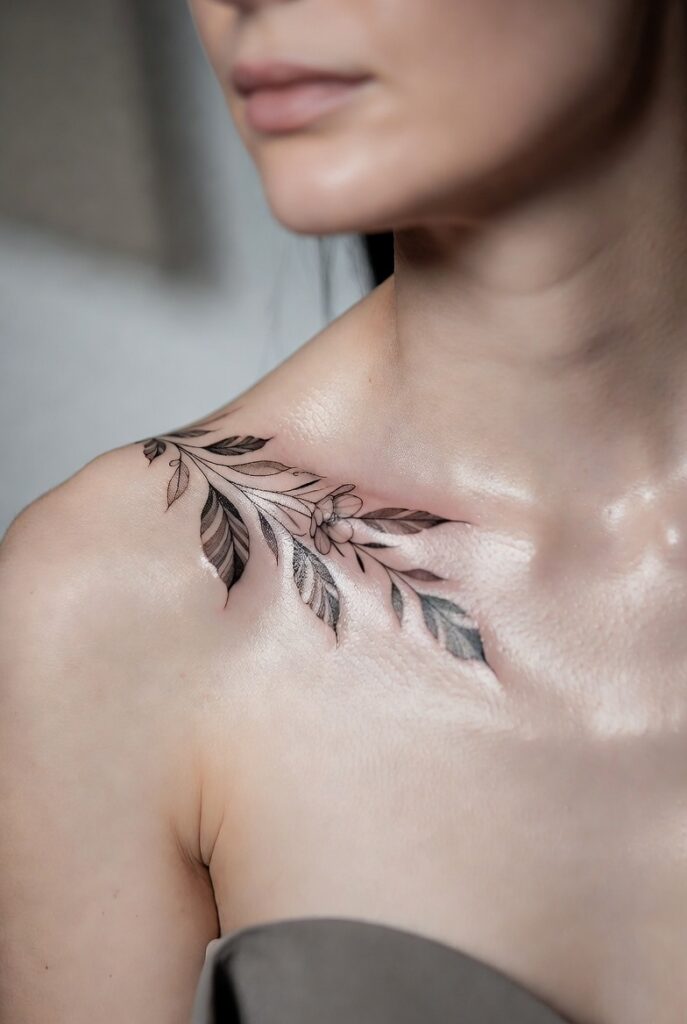 Collarbone placement creates elegant women tattoos that follow the natural body curve. Small floral or script beginner tattoos look delicate and feminine here. Many first-time tattoo lovers love this area because it feels stylish yet not overwhelming. Collarbone tatoos are graceful and eye-catching in a subtle way.